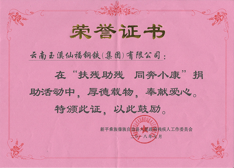云南玉溪仙福鋼鐵(集團)有限公司脫貧攻堅捐贈