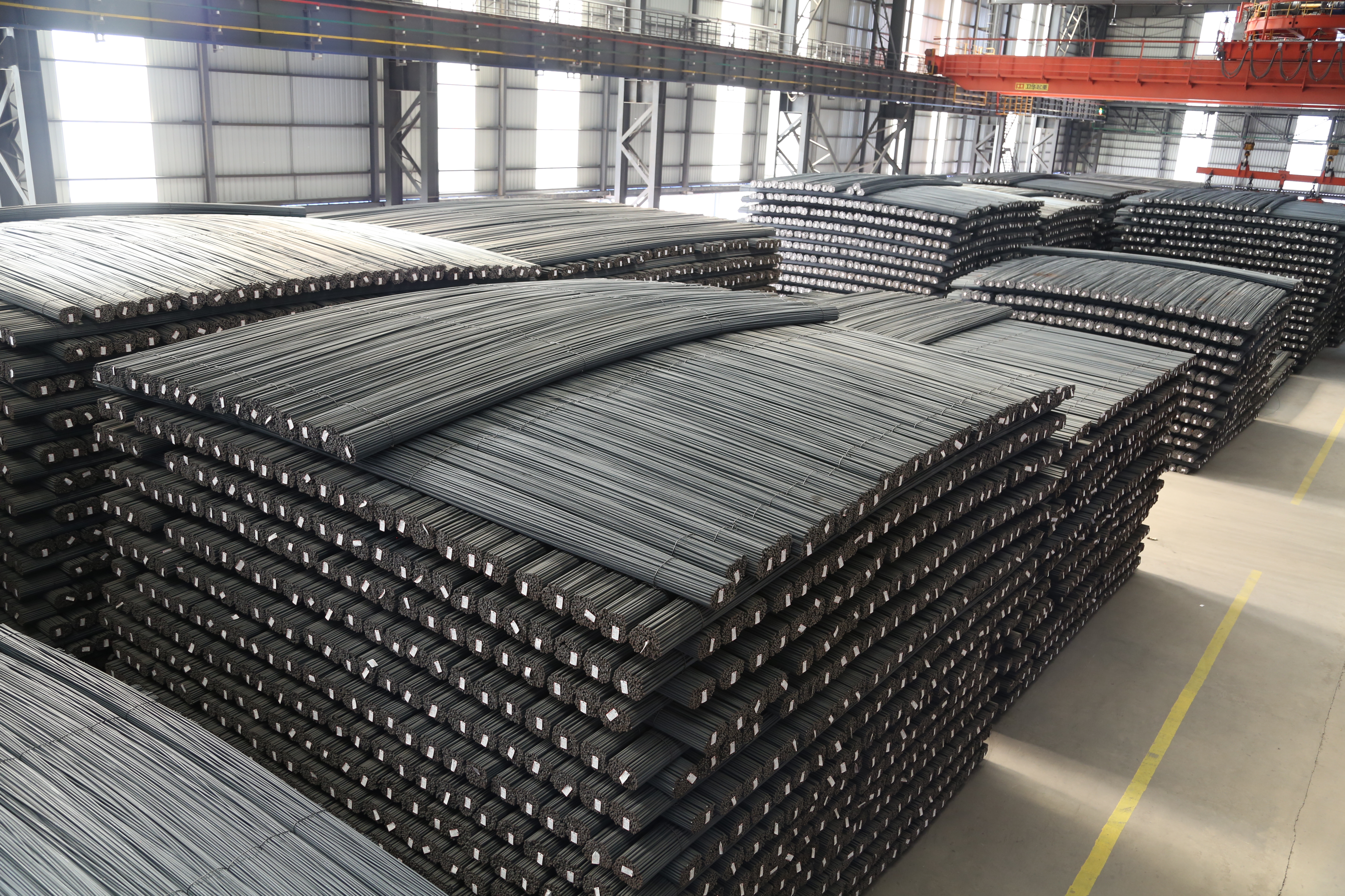 軋鋼廠現(xiàn)有生產(chǎn)設備,整體裝機水平在國內同類軋機中處于領先地位,線材采用先進工藝引進意大利達涅利公司制造的精軋懸臂式 45°軋機八臺、懸臂式 45°減定徑三臺、吐絲機一套,德國西門子制造打捆裝置二套等;帶鋼廠采用自動打包機及自動噴號機械手等裝置,使全線實現(xiàn)自動化控制,從而提高全線生產(chǎn)及管理水平。產(chǎn)品品種多,主導產(chǎn)品有棒材、線材、熱軋中寬帶鋼三大類,棒材可軋制牌號HRB400、HRB500、HRB400E、HRB500E、HRB600,Φ12mm、Φ14mm、Φ16mm、Φ18mm、Φ20mm、Φ22mm、Φ25mm、Φ28mm、Φ32mm、Φ36mm、Φ40mm、Φ50mm等12個規(guī)格鋼筋混凝土用熱軋帶肋鋼筋。線材可以采用普通熱軋工藝、超細晶粒軋制工藝生產(chǎn)規(guī)格Φ6mm、Φ8mm、Φ10mm、Φ12mm,牌號Q195、HPB300 及 HRB400、HRB500、HRB600、HRB400E、HRB500E 鋼筋混凝土用熱軋光圓鋼筋及鋼筋混凝土用熱軋帶肋鋼筋。帶鋼生產(chǎn)品種為碳素結構鋼及優(yōu)質碳素結構鋼 Q195、 Q235、Q355、08A、10、20、45、45Mn 及特種鋼,生產(chǎn)厚度:1.2~12.7mm 、寬度:500~850mm 。全系列高性能抗震鋼筋,碳素結構鋼及優(yōu)質碳素結構鋼、焊接用鋼、拉絲鋼等系列工業(yè)線材品種鋼等中寬帶鋼產(chǎn)品。