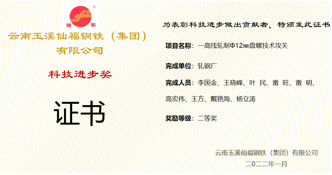 仙福鋼鐵集團軋鋼廠下設線材、棒材、帶鋼三個分廠,總員工850人,各分廠采用生產(chǎn)設備先進。其中線材分廠生產(chǎn)的光圓、盤螺產(chǎn)品引進美國摩根、意大利達利涅技術裝備,產(chǎn)品是高強度細晶粒抗震鋼筋,填補了云南省軋材生產(chǎn)的技術空白,實現(xiàn)了向高質量、高附加值產(chǎn)品的戰(zhàn)略轉移。帶鋼分廠的優(yōu)特帶產(chǎn)品包括沖壓用鋼、鍋爐用鋼、汽車用鋼、橋梁用鋼、高端護欄板等可后續(xù)延伸,主要應用于下游的各類金屬制品行業(yè),如焊管、冷彎、冷軋、鍍鋅、機械制造、鋼結構制作、裝潢等多個行業(yè)。